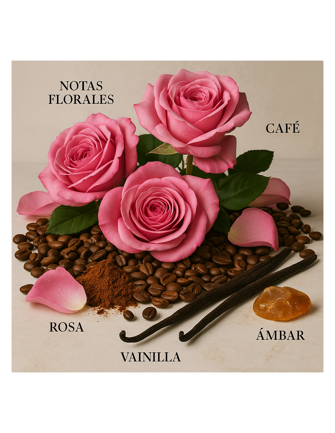 Les notes de sortida s’obren amb un bouquet captivador de rosa que, tot i ser inesperat en una fragància de cafè, aporta una suavitat floral elegant que prepara el camí i matisa la intensitat que està per arribar.