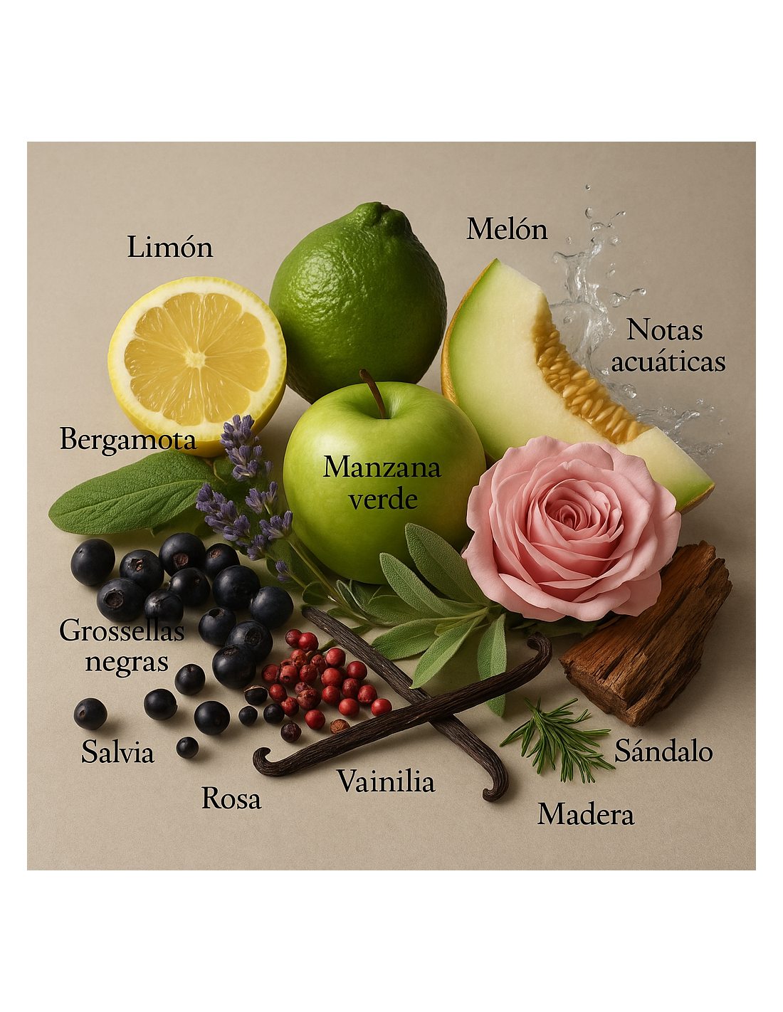 En el fons, el sàndal, l’ambre i la fusta de caixmir construeixen una base rica, cremosa i elegant que deixa una estela sofisticada i persistent.