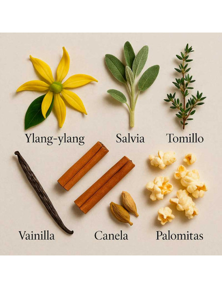 Una composició oriental-floral amb dos acords protagonistes: la lluminosa flor d’Ylang-Ylang, de matisos frescos, i l’espurna vibrant de la flor de gingebre. Al cor, un toc aromàtic de sàlvia i farigola aporta equilibri i elegància. El fons, addictiu i sensual, combina vainilla, canyella i mirra per deixar una estela càlida i profundament seductora.