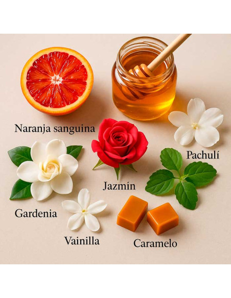 La fragància s’obre amb una barreja cítrica i espurnejant de bergamota, mandarina i taronja sanguina. Al cor, la mel pren el protagonisme i, juntament amb la gardenia, compon una essència balsàmica, dolça i cremosa. A la base, el perfum es torna més càlid i sensual amb notes de paxuli, cera d’abella i fava tonka, deixant una estela addictiva i envoltant a la pell.