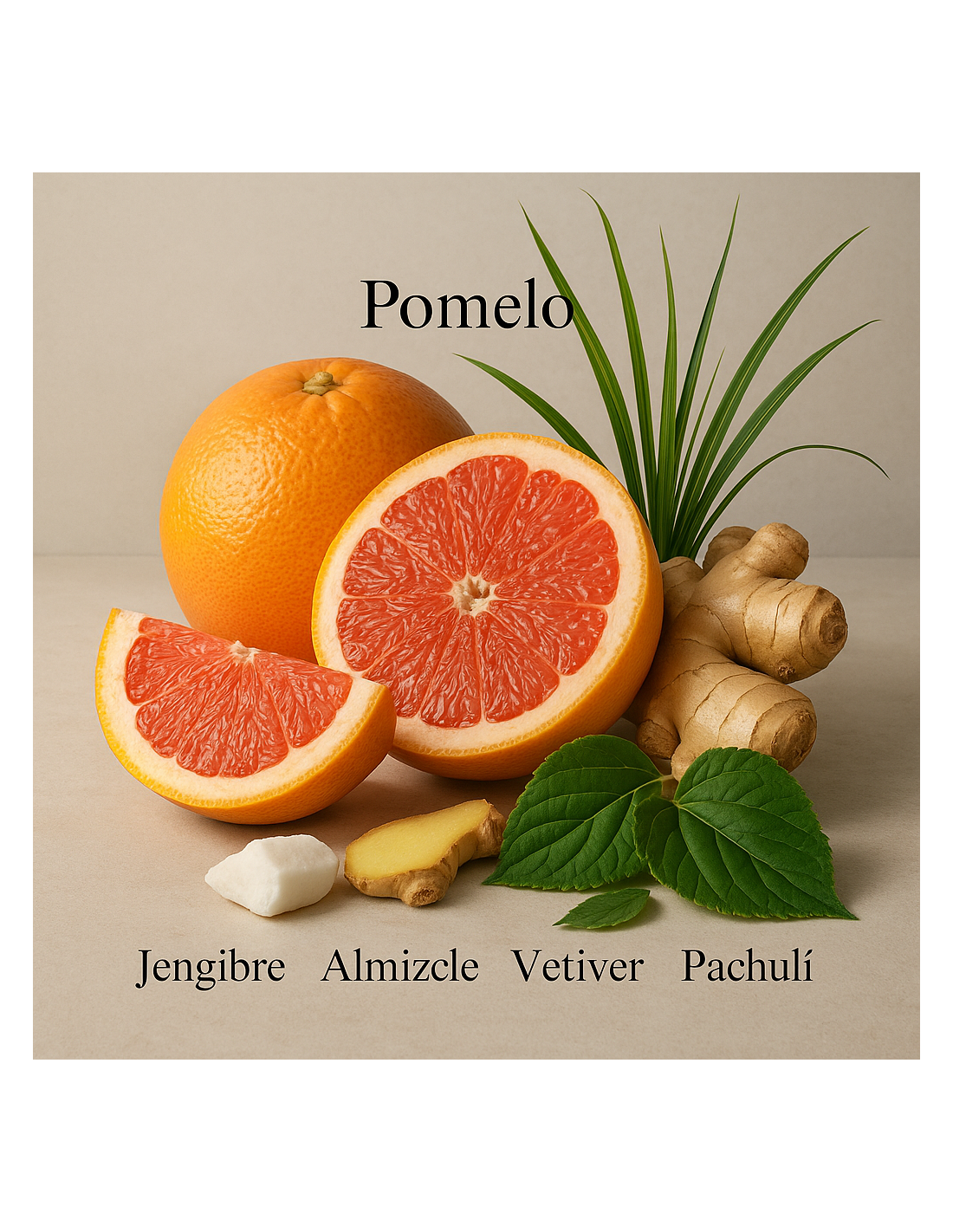 Obre amb la vibrant toronja (pomelo), que ofereix una explosió cítrica i revitalitzant. A mesura que evoluciona, el gingebre aporta una sensació especiada i picant, mentre que el lledoner ambreta suavitza i embolcalla la fragància amb un toc sensual i elegant. En el fons, l'ambroxan agrega una riquesa amaderada i lledoner, complementat pel vetiver, que introdueix una nota terrosa i fumada, i el pachulí, que li dóna una profunditat herbàcea.