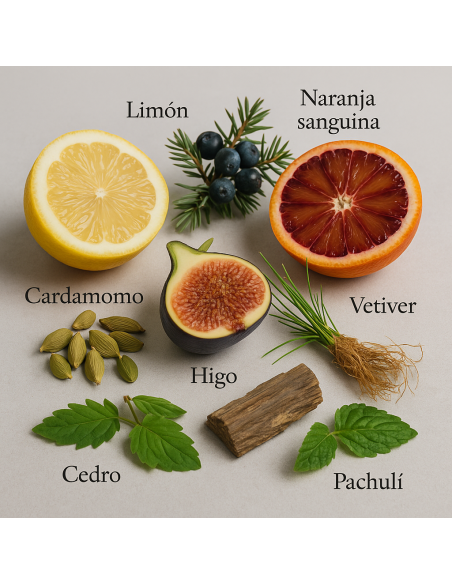 Les notes de sortida inclouen una barreja de cítrics, com la taronja sanguina i la llimona siciliana, juntament amb notes fresques de sàlvia que aporten una sensació de frescor i vitalitat.