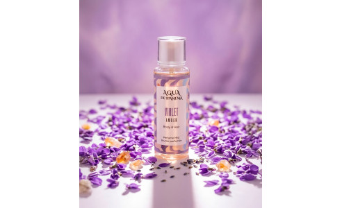 Larome Violet Amber · 250 ml Rio's sunset on your skin. Bossa nova in the air. The moment when night changes everything. Larome Violet Amber captures the magic of the Brazilian dusk. Enveloping and delicious, this woody gourmand opens with the sweetness of velvet plum and sugared violet, while a heart of vanilla orchid and whipped amber gives way to a deep base of sheer sandalwood and fresh vetiver. Embrace the dusk.