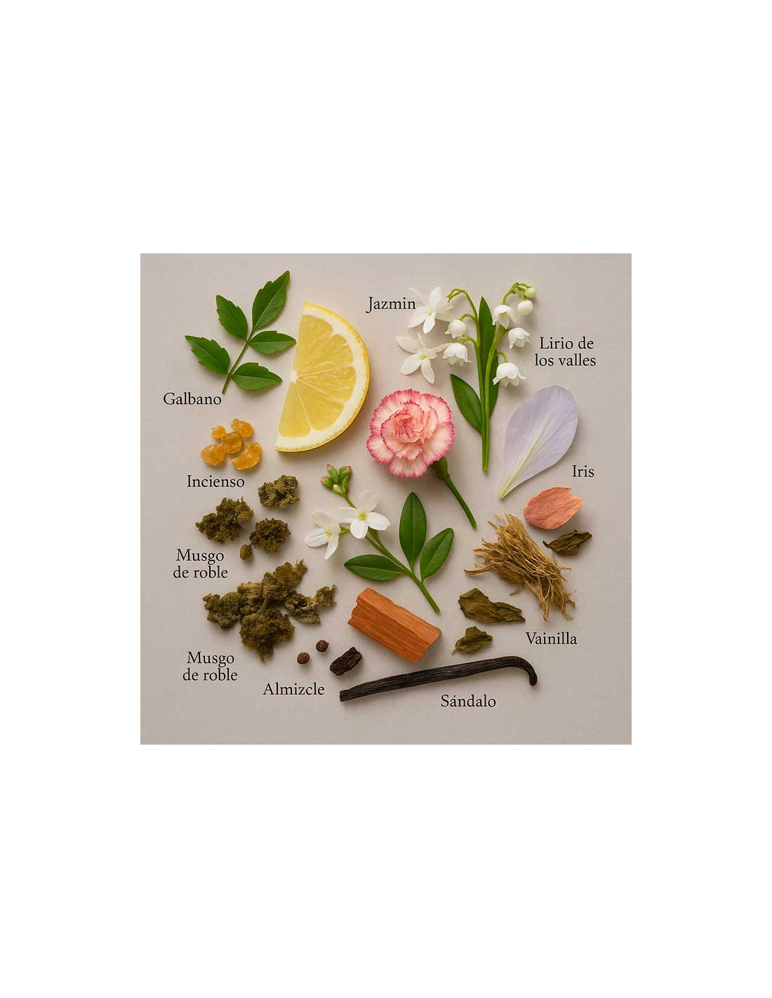 A fresh and soft perfume. Its fragrance is a blend of floral, citrus and woody notes that create an elegant and sophisticated aroma.