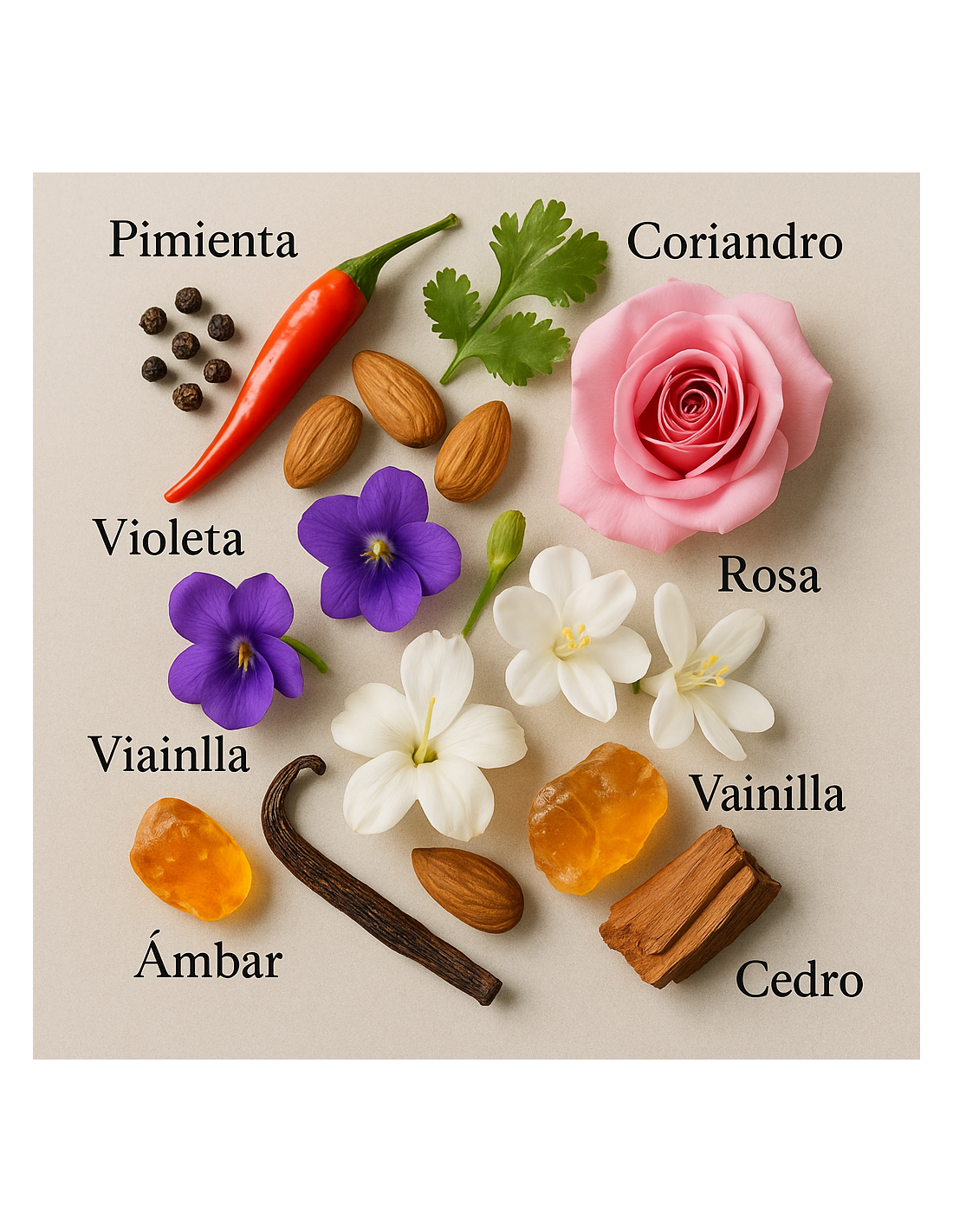It is an extremely amber-based perfume. The top notes are fresh and energizing, with an explosion of pepper and sweet almonds that ignite the senses from the very first moment. At the heart, the delicacy of violet blends with the exotic Osmanthus flower, creating a seductive and addictive floral aroma.