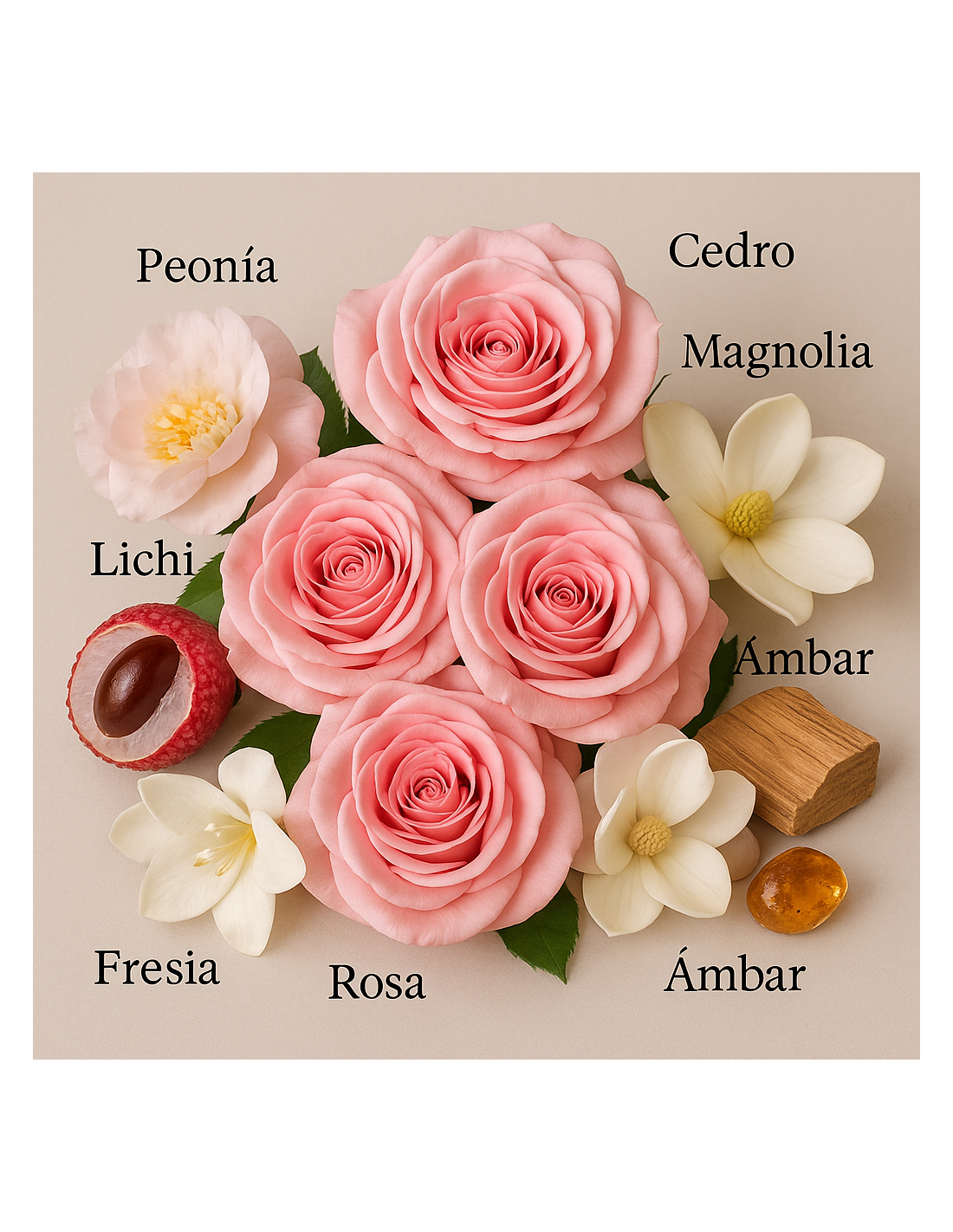 Top notes: peony, lily of the valley, freesia, rose, lychee.