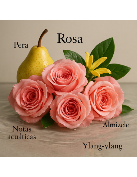 The top notes, with a delicate touch of pear, ambrette and pink grapefruit, bring freshness and a bright, fruity nuance. At the heart, a floral bouquet of rose, ylang-ylang and jasmine unfolds femininity and sophistication. The base, enveloping and elegant, blends musk enhanced with amber, leaving a seductive and refined trail.