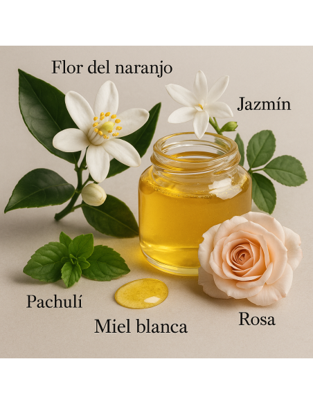 The top notes of African orange blossom and mandarin create an explosion of freshness and vitality, evoking the feeling of a luminous sunrise. The heart, composed of jasmine and orange blossom, adds delicacy and femininity. Finally, the trail becomes more woody with an alliance of patchouli, cedarwood and rose honey, like a gentle embrace on an autumn afternoon.
