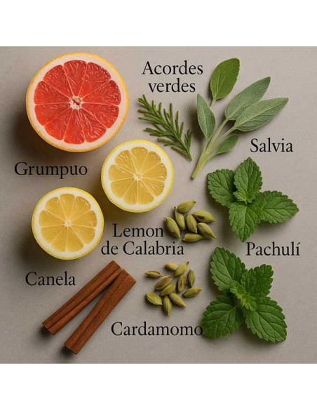 Con notas de salida de limón de Sicilia y salvia, seguidas de un corazón compuesto por canela, praliné y cardamomo, esta fragancia es una mezcla de frescura y dulzura que se funde con un fondo amaderado de ámbar y pachulí.