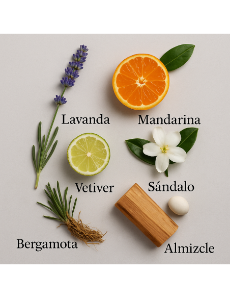 La salida se abre con una mezcla luminosa de mandarina y bergamota, aportando frescor y vitalidad. En el corazón, aparecen notas florales de lavanda y flor de azahar, que aportan un carácter suave, limpio y delicado.