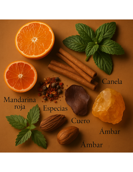 Las notas de salida de pomelo y menta aportan una sensación refrescante y revitalizante, mientras que el corazón de canela aporta un toque cálido y especiado. Finalmente, las notas de fondo de cuero, madera y pachulí crean una base sensual y duradera que evoca un sentido de poder y confianza.