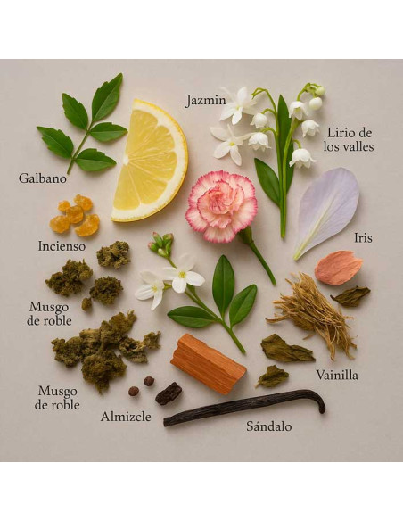 Fondo: almizcle, vetiver, sándalo, vainilla.