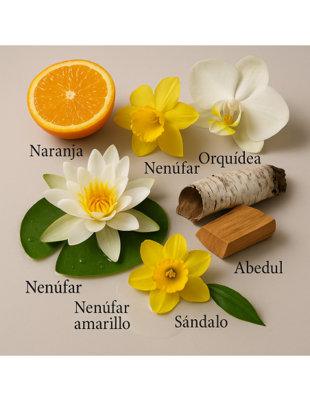 Su salida es luminosa y refrescante gracias a la combinación cítrica de toronja y mandarina. En el corazón florece un bouquet femenino y sofisticado formado por jazmín, lirio de los valles y orquídea, que aporta un toque suave, floral y urbano a la composición. La fragancia descansa finalmente sobre un fondo aterciopelado de madera de abedul, cálido, elegante y envolvente.
