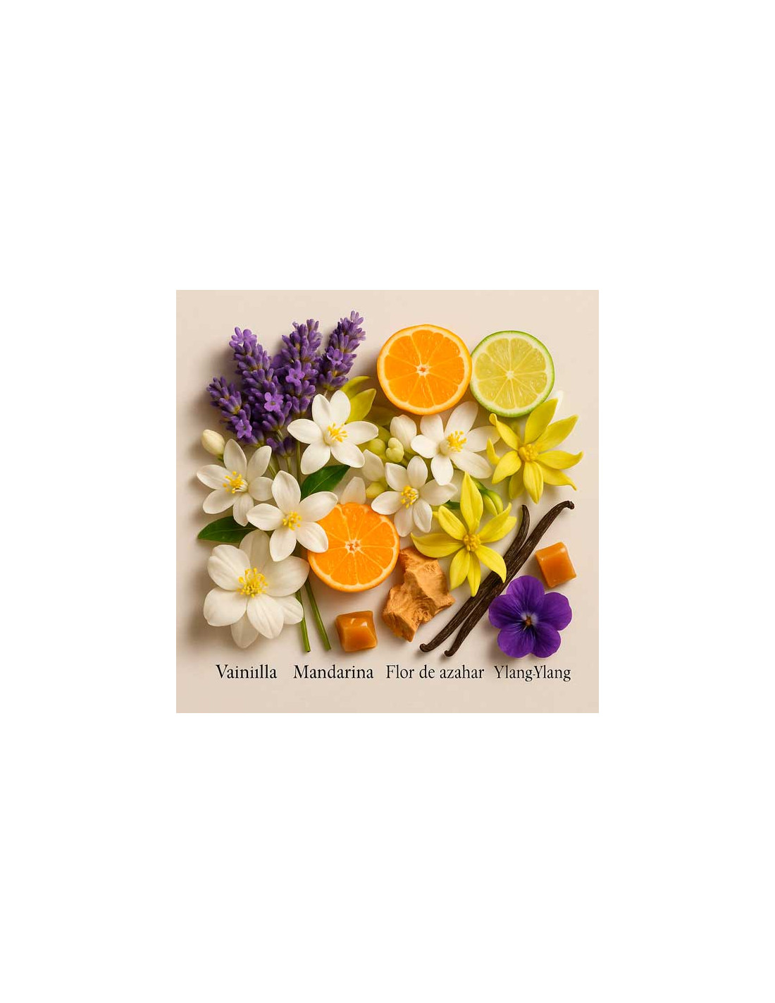 Las notas de salida de lavanda y bergamota aportan frescura y un brillo cítrico luminoso. En el corazón, una armoniosa mezcla de jazmín sambac, iris y rosa búlgara despliega una suavidad floral y empolvada. El fondo, con vainilla, sándalo australiano, pachulí y cumarina, envuelve la fragancia en una sensación cremosa, aterciopelada y profundamente cálida.