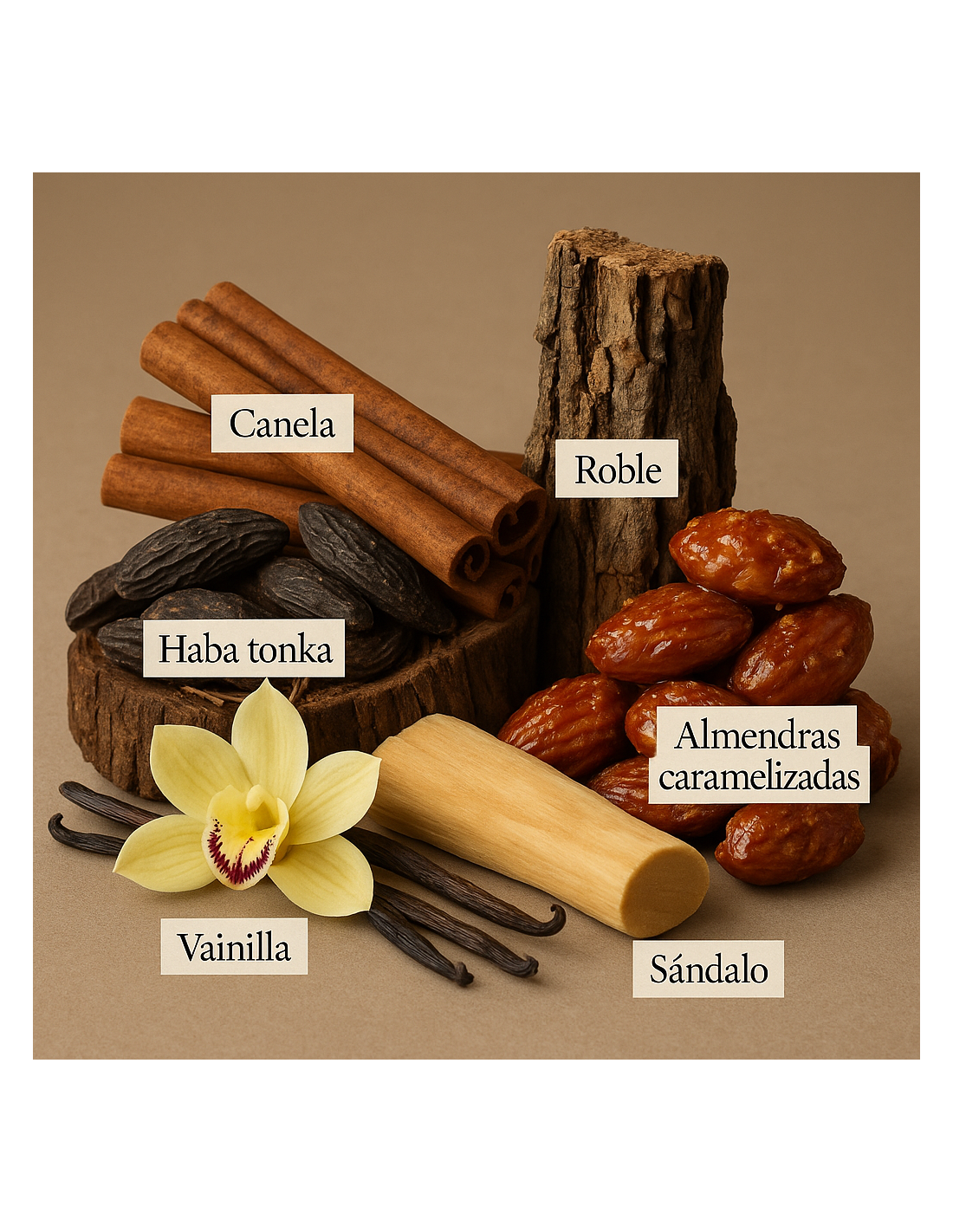 Corazón: canela, madera de roble, haba tonka.