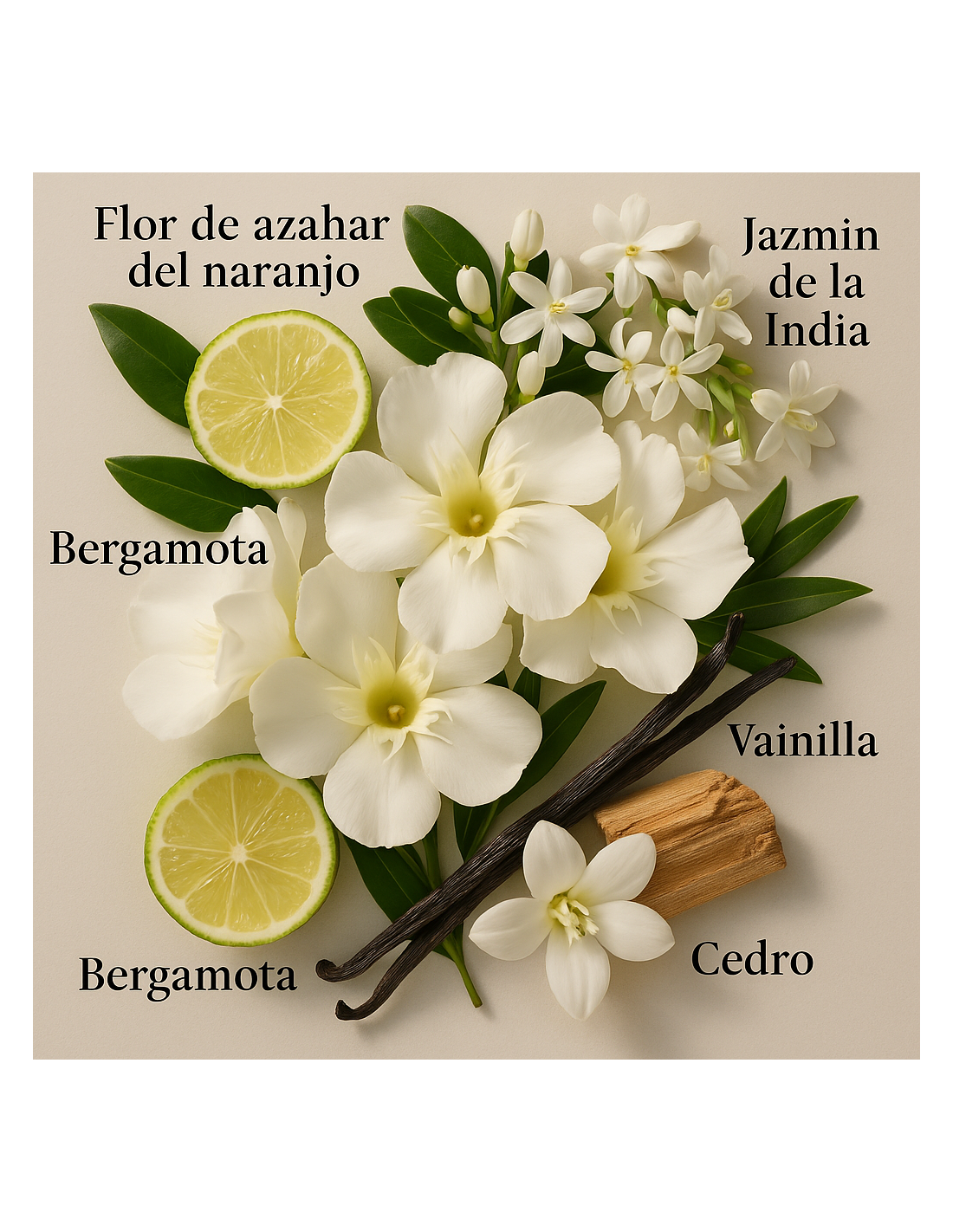 L’expérience commence par une balade sur le Nil, où la fraîcheur de la bergamote italienne se mêle à l’éclat de la fleur d’oranger égyptienne. Au cœur, les fleurs blanchestubéreuse et jasmin d’Inde— s’accordent en parfaite harmonie. Le final révèle des notes de bois de cèdre de Virginie, la douce vanille de Madagascar et le musc blanc, laissant un sillage élégant et lumineux.