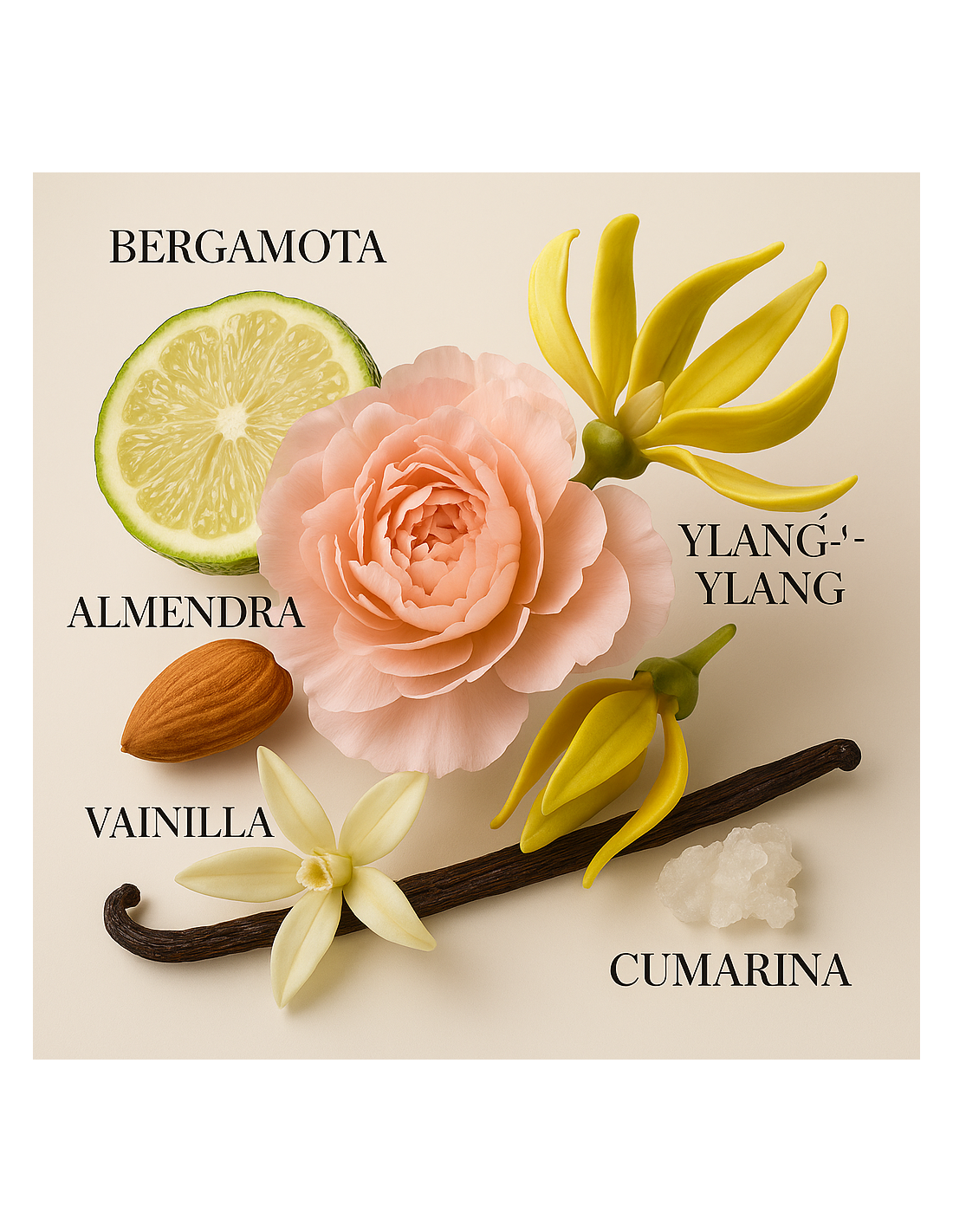 Ce parfum est l'expression de contrastes captivants. Les notes lumineuses d'agrumes de la bergamote se mêlent à la profondeur légèrement épicée de l'amande amère, évoquant la fraîcheur et le mystère d'un paysage exotique.