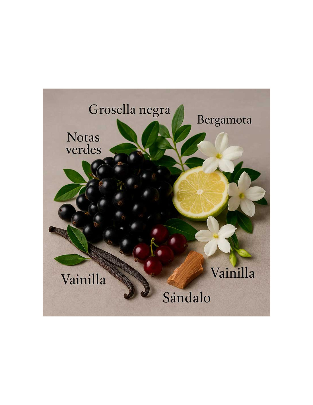 Les notes de tête, avec une touche de bergamote, de cassis et de mandarine, apportent fraîcheur et un caractère hespéridé lumineux. En cœur, un bouquet de fleurs blanches avec le jasmin et le muguet déploie féminité et délicatesse. Le fond évolue vers un sillage plus oriental, associant cèdre, santal, vanille et fève tonka, enveloppant la peau de chaleur et de profondeur.