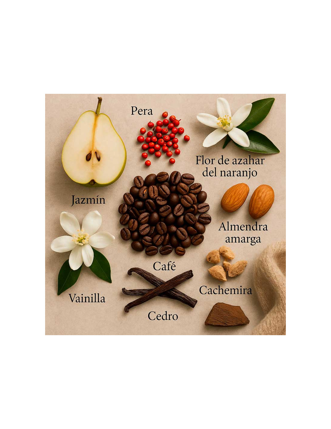 Les notes de tête, avec une touche de poivre rose et de fleur d’oranger, créent une ouverture vibrante et inoubliable. En cœur, l’association unique du café noir et du jasmin sambac apporte une facette addictive et séduisante. Le fond de vanille, de patchouli et de cèdre enveloppe la fragrance d’une chaleur intense et réconfortante.
