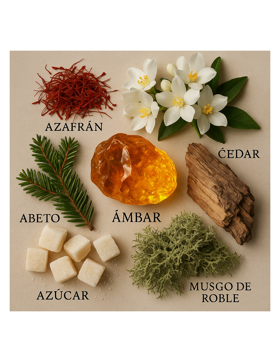 Fondo: muschio, legni, ambra grigia.