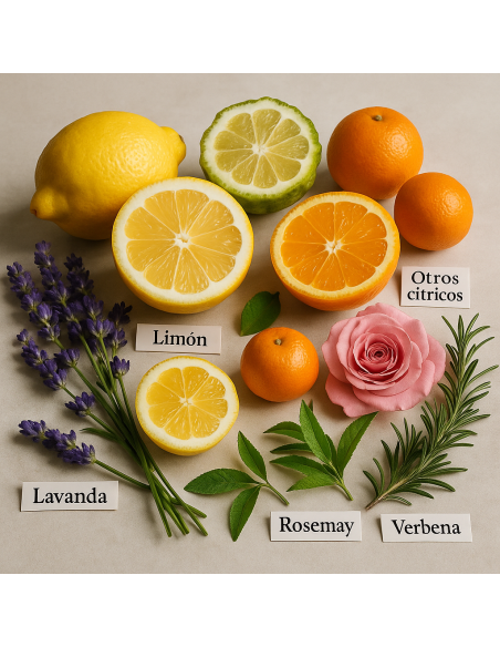 L’apertura è caratterizzata da una esplosione di note agrumate fresche. Nel cuore, le note aromatiche e floreali di lavanda, rosa, verbena e rosmarino donano raffinatezza e profondità.