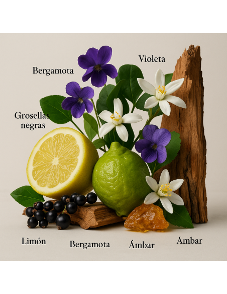 Nel cuore, la morbidezza della viola si fonde con petali di gelsomino e ciclamino, regalando eleganza e una scia floreale avvolgente. Infine, il fondo di ambra nera, muschio, vetiver e legno di cedro marocchino lascia un’impronta calda e persistente, capace di sedurre sin dal primo istante.