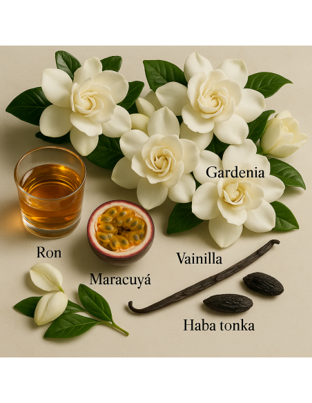 Le note di testa di frutto della passione e rum donano una dolcezza tropicale ed esotica. Nel cuore, un’elegante combinazione di muschio, gardenia e mandorla amara aggiunge un carattere floreale e mandorlato molto raffinato. Il fondo di fava tonka e vaniglia crea una scia sensuale e avvolgente che abbraccia la pelle con un’aura calda e seducente.