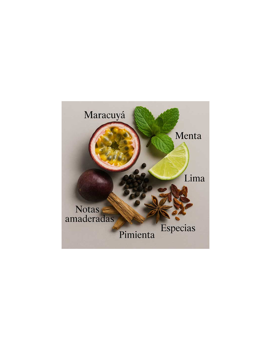 Con vibranti note di testa di pepe, menta e frutto della passione, si apre con un'esplosione di energia e vitalità. Nel cuore della fragranza ci sono note di zenzero e pepe nero che aggiungono un tocco speziato e seducente. Alla base si mescolano note legnose e cuoiate che gli conferiscono un tocco finale di mascolinità ed eleganza.