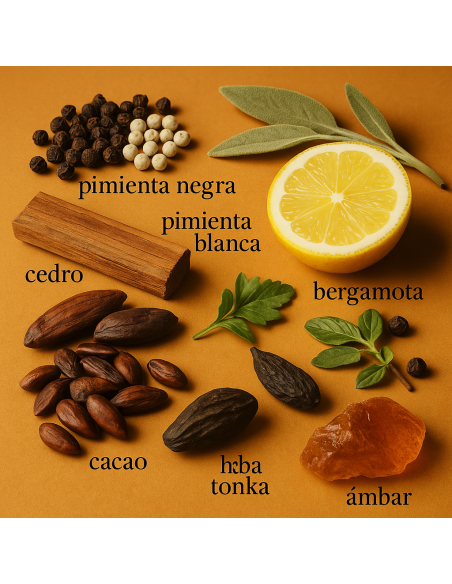 All'applicazione della fragranza, le note di testa si aprono con una miscela rinfrescante di bergamotto e pepe bianco e nero, fornendo una sensazione tonificante ed energizzante. La fragranza poggia su una base di legno di cedro e salvia, che aggiungono un senso di profondità e calore alla fragranza. Le note legnose sono bilanciate dalla speziatura del pepe nero, creando un aroma caratteristico e seducente.