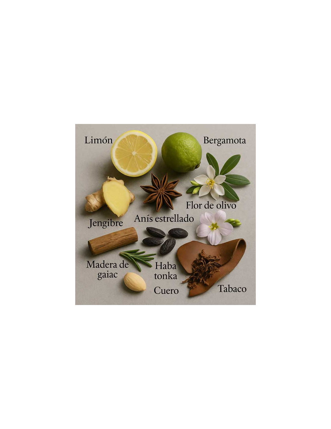 Nel cuore della fragranza ci sono note aromatiche di rosmarino e fiori d'ulivo , che aggiungono un tocco speziato e vibrante, mentre il dolce legno di guaiaco ammorbidisce il mix e aggiunge un tocco più elegante e sofisticato. Infine, la fragranza si assesta su una calda base legnosa di fava tonka, ambra grigia e muschio, conferendo un senso di profondità e mistero al mix.