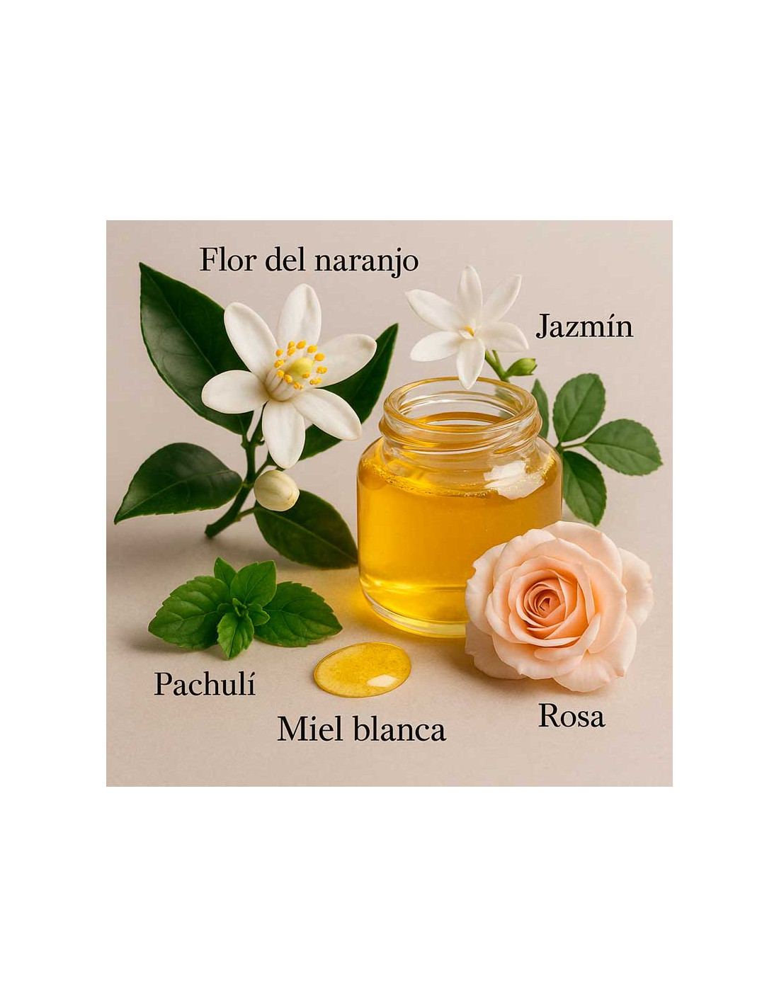 Fundo: patchouli, cedro, mel de rosa.