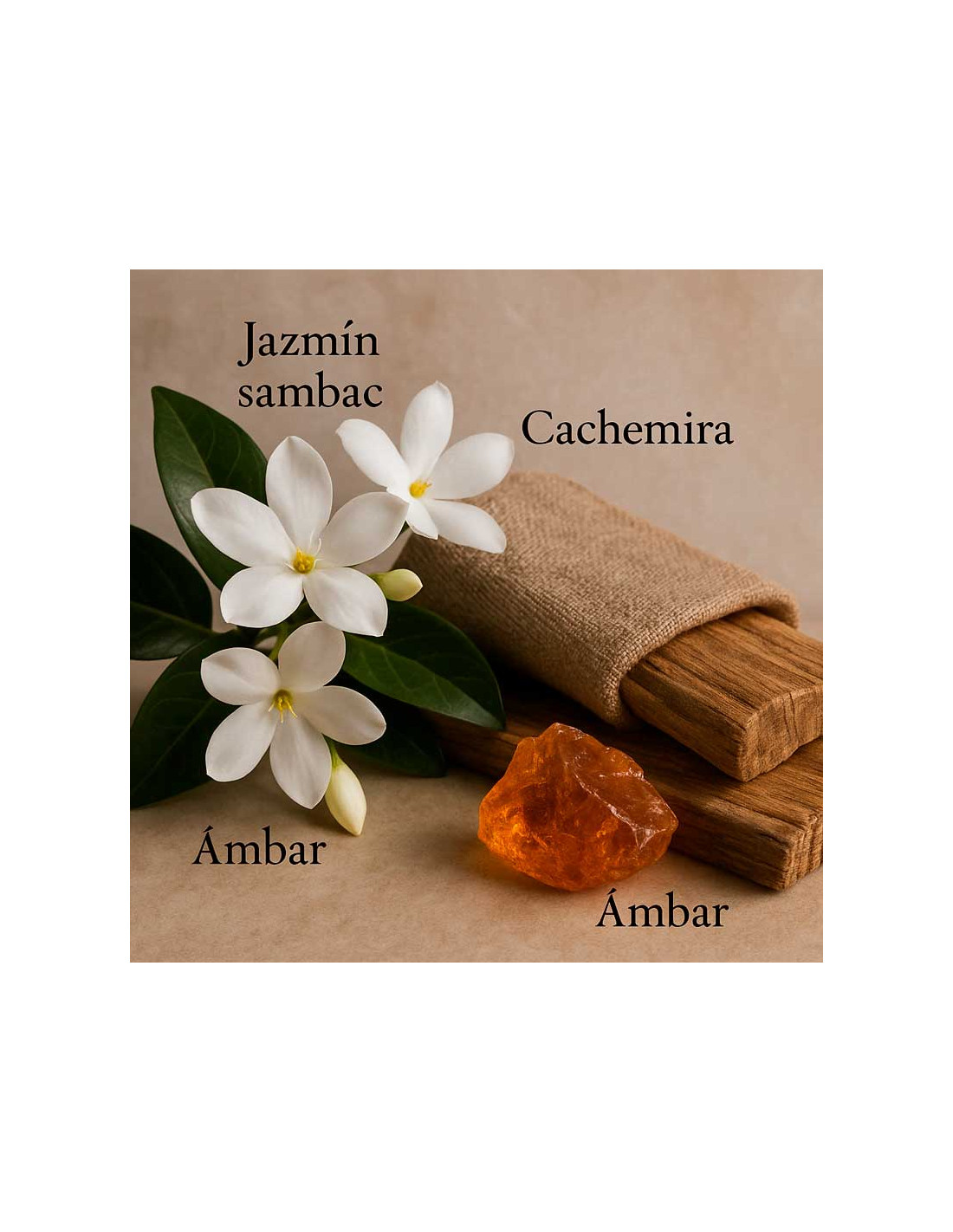 Os perfumistas da Larome imaginaram um elixir misterioso e sensual em torno de três facetas: uma faceta ambarada, uma faceta amadeirada e uma faceta floral dominada pelo calor do jasmim da Índia.